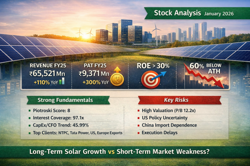As of early 2026, Premier Energies Limited represents a high-quality solar manufacturing business with exceptional operational growth and strong financial metrics. However, the stock currently faces a valuation gap, where market sentiment and macro uncertainties overshadow company performance.